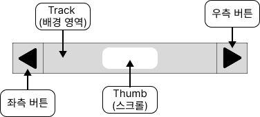스크롤바의 감소/증가 버튼은 트랙 안에 포함되지 않고 바깥쪽에 따로 붙어 있는 구조로 배치됩니다.