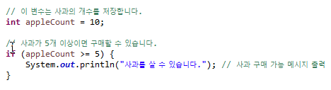 Java에서 // 기호를 사용해 한 줄에 짧게 설명을 붙일 수 있는 주석입니다.