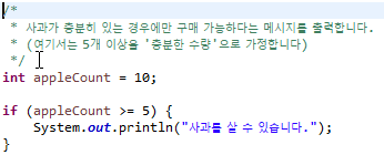 Java에서는 /* */ 기호를 사용하여 여러 줄에 걸쳐 설명을 남길 수 있는 주석입니다.
